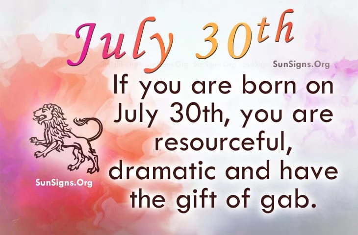 Famous people born on July 30th are a Leo that has great potential to be an inspiration to someone as they certainly are resourceful, dramatic, and vocally clever. They can be an effective team player or the lead of such groups. However, they can be impulsive.