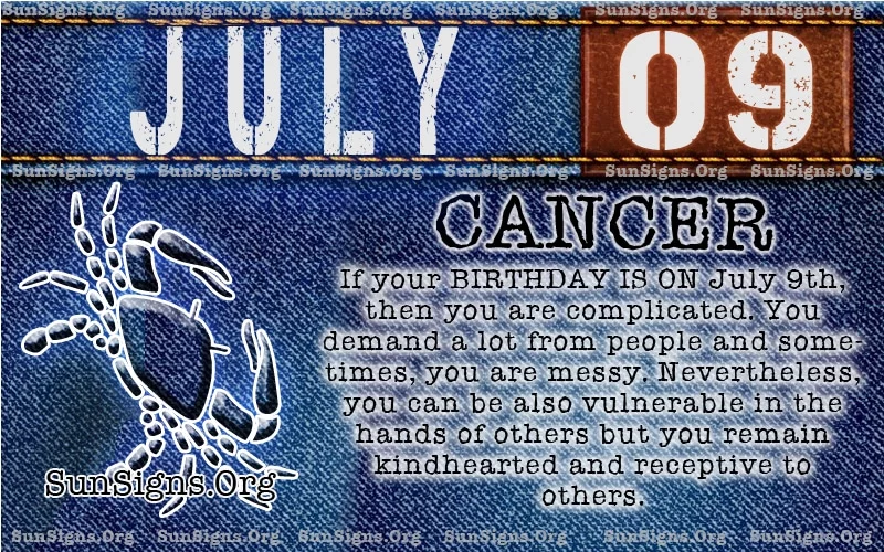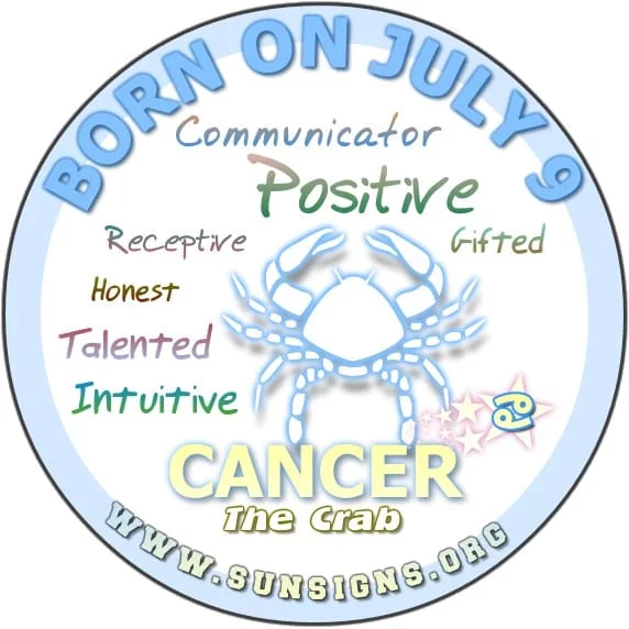 JULY 9 Birthday Horoscope predicts that you are especially vulnerable and kindhearted. It is typical of the Crab to offer a hand to strangers, friends, and family. This person is delightful and helpful.