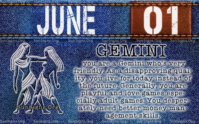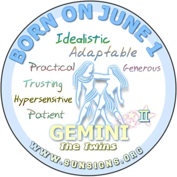 Normally, if today June 1st is your birthday then you are funny, easy-going, and optimistic twins. With your wisdom and curious nature, you will more than likely find the Gemini unconventional and emotionally circumspect.