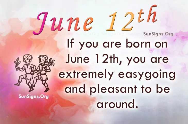 Famous people born on June 12 are Gemini who are extremely easygoing and exceptionally pleasant to be around. They are also quick to pick up on new ideas and to learn new things. As this may be true, they tend to get restless easily.