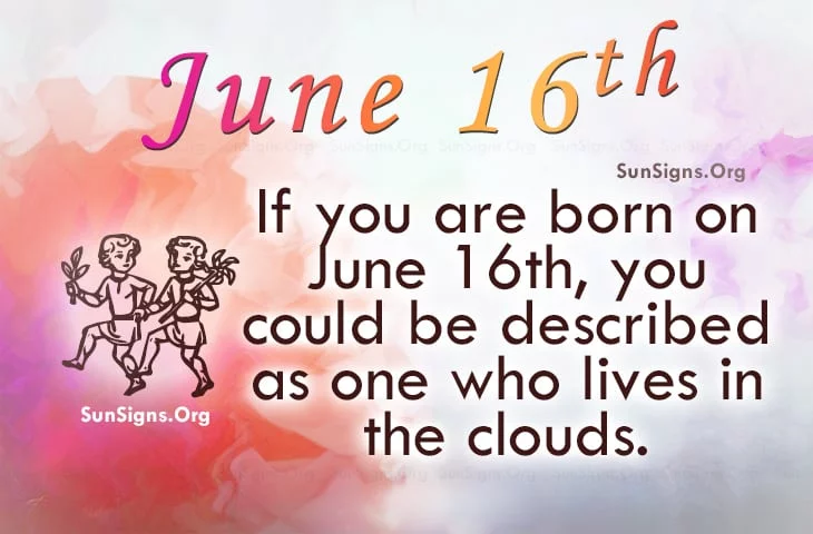 Famous people born on JUNE 16 are Gemini who could be described as someone living in the clouds. They have a gift to see beyond tomorrow in most cases. This is not something every Gemini is privy to. They are unique in more ways than one.