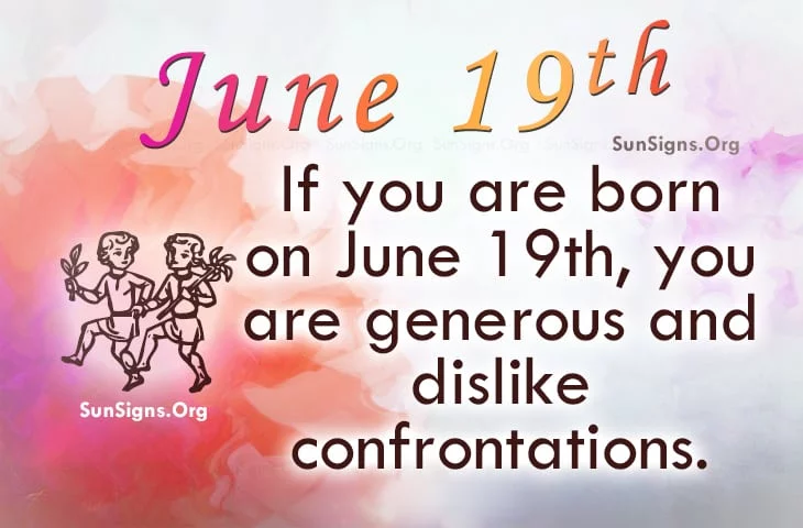 Famous people born on JUNE 19 are somewhat of a peacemaker. As a Gemini they dislike confrontations but are not afraid to say what’s on their mind. They like being around people who are like them – generously giving individuals.