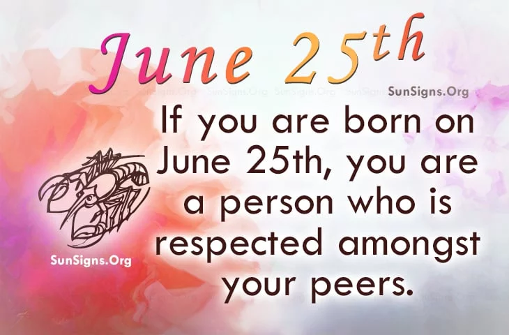 Famous people born on JUNE 25 know that their zodiac sign is Cancer. They are people who are respected among their peer group although they like being alone. It’s hard to fool them as they have great intuition.