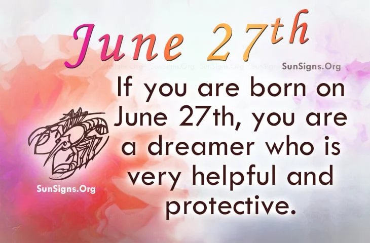 Famous people born on June 27th are very helpful and protective Cancer sun sign, although they wear their heart on their sleeve. Their friends and family are important to them. As a dreamer, they have a tendency to wish for security and love.