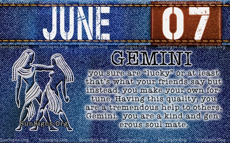 Yours is especially interesting as you attract people with the same negative and positive qualities as you. The June 7th birthday means saying you are a tremendous help to others as well Gemini.