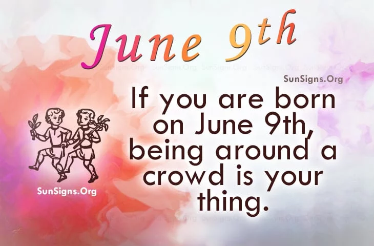 Famous people born on June 9 can understand the thinking of a child’s mind as they may have had many sisters and brothers. They can be considerate and sensitive. As a negative, this famous June 9 Gemini can be reckless and narrow-minded. For this reason, they may marry late in life.
