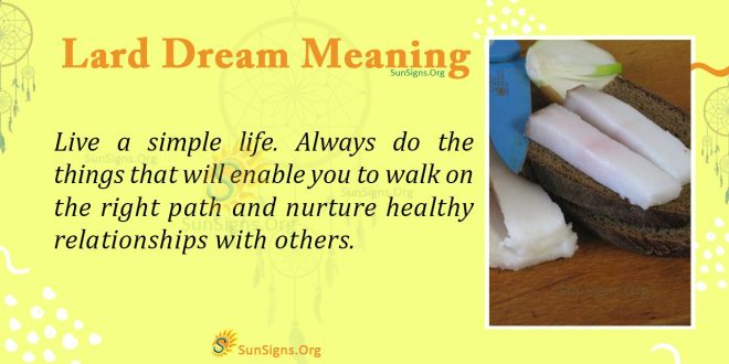 The lard dream symbol urges you to stop obsessing over material things. This is not the only way that you can live your life. There is more to life than the properties you possess. Live a simple life. Always do the things that will enable you to walk on the right path and nurture healthy relationships with others.
