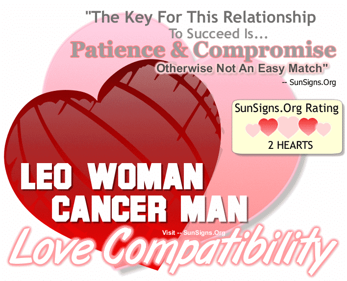 Leo Woman Compatibility With Cancer Man Match:- The Cancer Man is more emotional than she is and this can aggravate the Leo female. She just doesn’t understand this and just might growl at him for any outbursts. Then he will shrink away even more. Cancer will have to dial back the emotion and assert himself more if his Leo woman is to take him seriously. Likewise, she will have to be more understanding and check her ego. This match can be difficult in love compatibility and might lead to a breakup. Continue Reading…