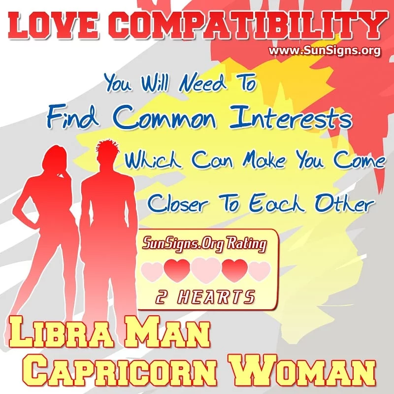 Libra is a cardinal air sign and Capricorn is an earth sign that is cardinal by nature. The compatibility gets a TWO Hearts love rating.