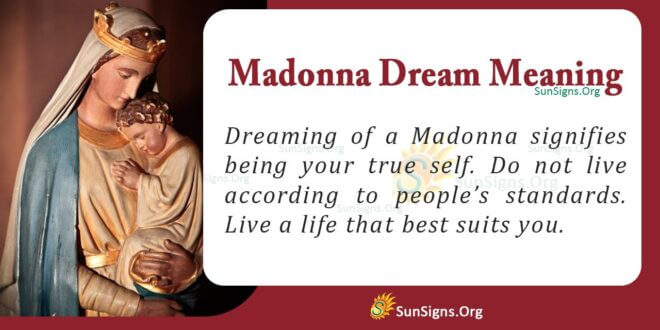 According to the Madonna dream analysis, a Madonna appearing in your dream symbolizes your femininity. It is also a sign that healing is taking place in your life.