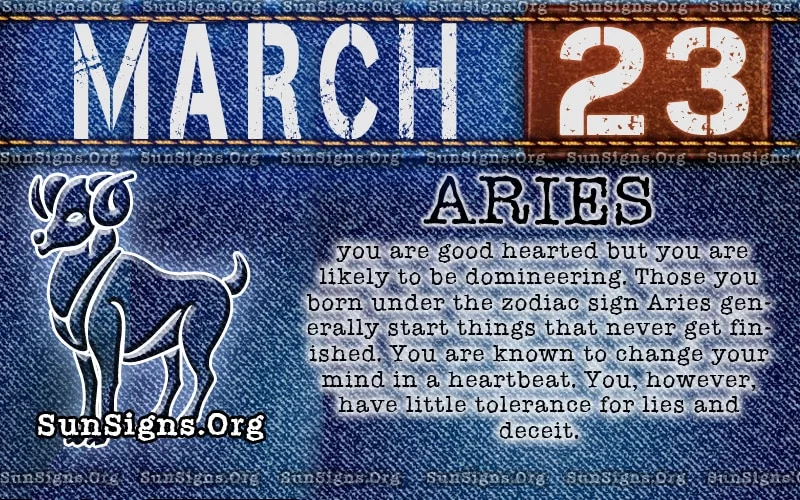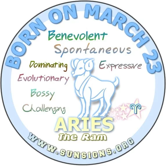If you have a March 23 Birthday, you are an Aries who is good-hearted, but you can be a little bossy. Un huh…that is right, bossy! You are good at expressing yourself. Arians speak their minds, which makes them outstanding conversationalists.