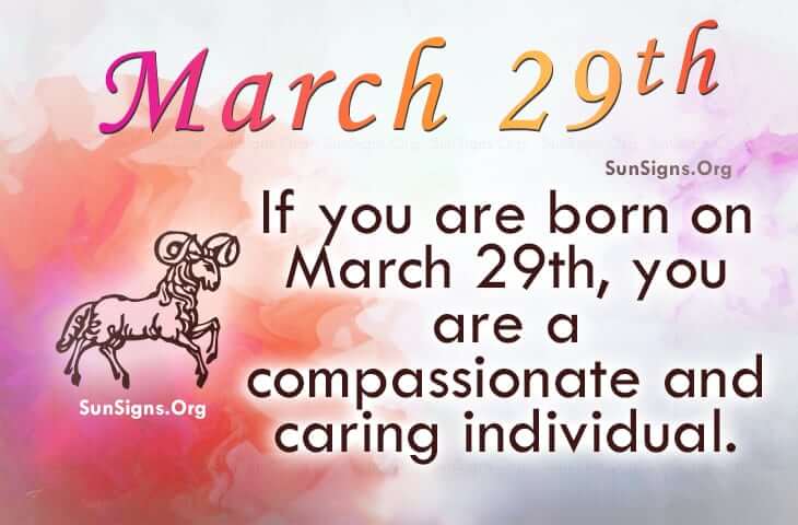 Famous people born on March 29th are Aries who could have psychic abilities. They are a people person who attend to the needs of others. They are compassionate individuals who are either extremely active or exceptionally idle.