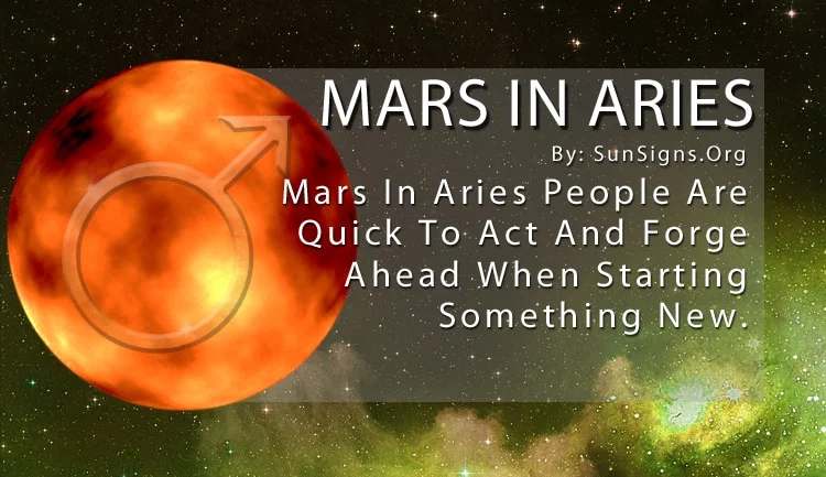 Mars is the ruling planet for Aries in astrology. So when Mars is in Aries, it makes them quick to act. There’s no time to consider the consequences when starting something new. Aries use their instinct to forge ahead, and they’re usually right. But they also have trouble following through to completion.