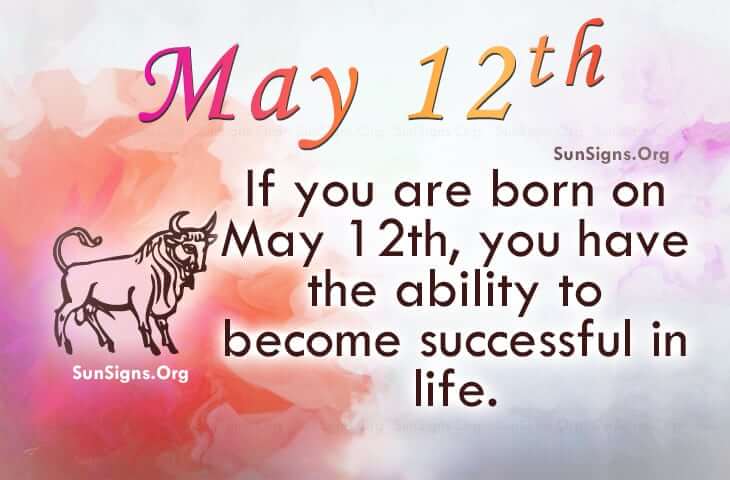 Famous people born on May 12 are loaded with energy. The younger ones often find themselves mocking their behavior and style. Their biggest fear is failure. The May 12 Taurus believe a lasting relationship is based on more than just physical attraction.