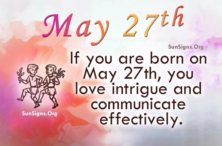 Famous people born on May 27 are Gemini who are intriguing people. This quality allows them to communicate effectively with diverse cultures. Socially, they love to dine at five star restaurants. They are not afraid to share their sexual desires.