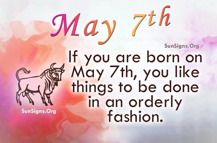 Famous people born on May 7 are Taurus who are likely to need things done in an orderly fashion and done right the first time. In school, they probably were on the Dean’s List a lot. One thing is for sure is that they are imaginative.
