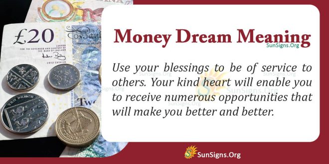According to the money dream symbolism, this dream is a sign that you should be there for someone or people who need your help, support, guidance, and love. Use your blessings to be of service to others. Your kind heart will enable you to receive numerous opportunities that will improve you.