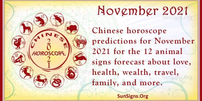 Sunsigns.Org presents you with the 2021 November Chinese monthly horoscopes. Find out what will be happening in your life this month of November. November 2021 Chinese Horoscope provides a detailed and accurate look at the likely happenings in the month for the 12 zodiac signs. Get an insight into your career, finance, love, and social relationships, and health for this month of the White Metal Ox.