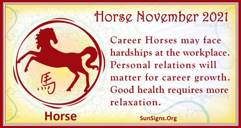The lunar month of November is not propitious for Horse individuals. They should be ready to face a series of problems.
