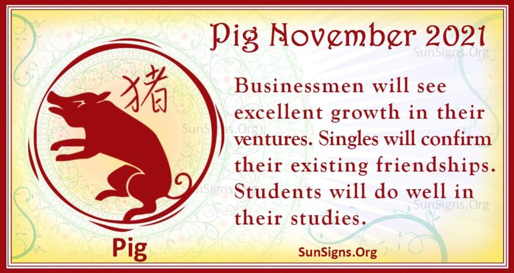 The lunar month of November will prove to be extremely fortunate for Pigs.