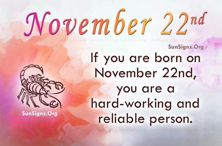 Famous people born on NOVEMBER 22nd are extremely hard-working Scorpios. They will be successful even if it kills them. As the “norm”, they feel responsible for their family. They may have a need to protect them. More so, they have a need to be free.