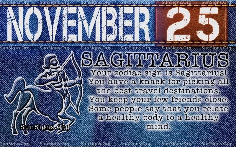The NOVEMBER 25 birthday horoscope predicts that you make friends easily. As a Sagittarius born today, you are passionate about life. To you, it is to be lived to the fullest and anything less just exists. You want to have fun all the time.
