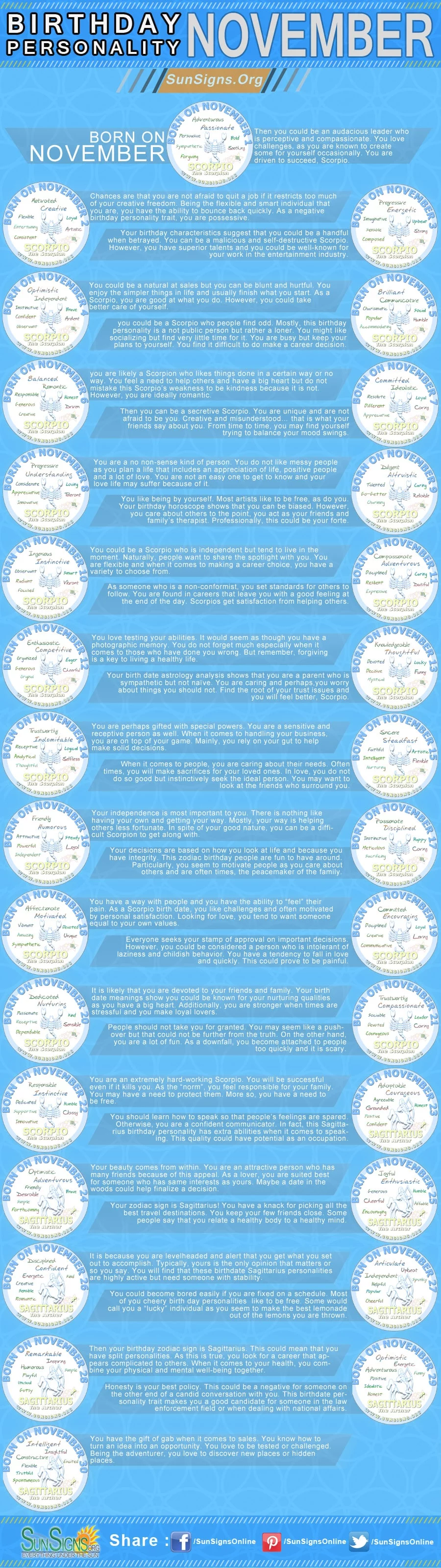 Here is the online edition of the November Birthday Infographics brought to you by Sunsigns.Org. Get instant birthday horoscopes for everyone born in November within seconds in the form of attractive images and pictures.