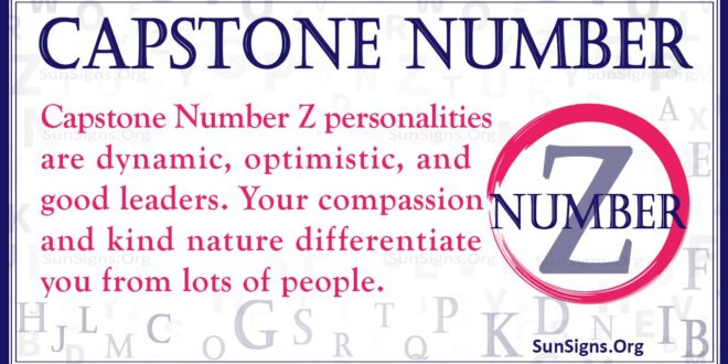 Capstone Number Z personalities are dynamic, optimistic, and good leaders. The only thing that interferes with their positive traits is their inability to exercise patience. Once you master the art of patience, you will enjoy completely the fruits of your labor.