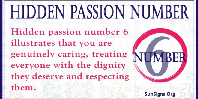 In a word, their Hidden Passion number 6 illustrates that you are genuinely caring, treating everyone with the dignity they deserve, and respecting them.
