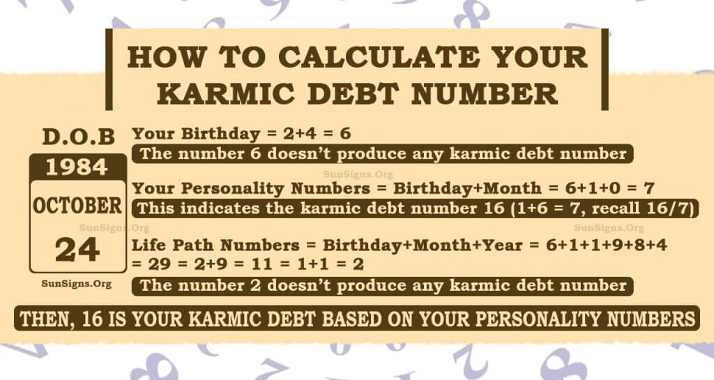 The method of Karmic debt analysis is simple and somewhat enjoyable. The numbers 13, 14, 16, and 19 are Karmic debt numbers in numerology. When the karmic debts number analysis is done, it is supposed that the numbers 13, 14, 16, and 19 are present in expression number, life path number, heart desire number, and several other essential numerology numbers.