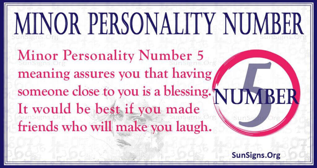 Minor Personality Number 5 assures you that having someone close to you is a blessing. It would be best if you made friends who will make you laugh.