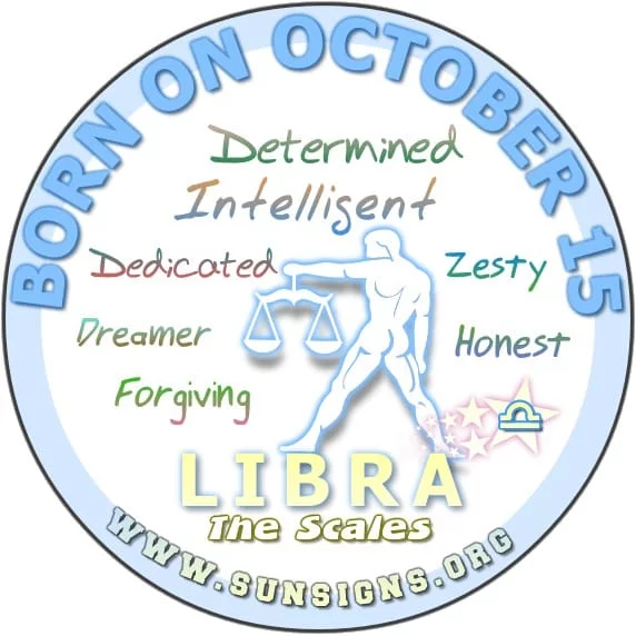 IF YOU ARE BORN ON OCTOBER 15, you are likely a Libra who’s loyal, intelligent and dedicated.
