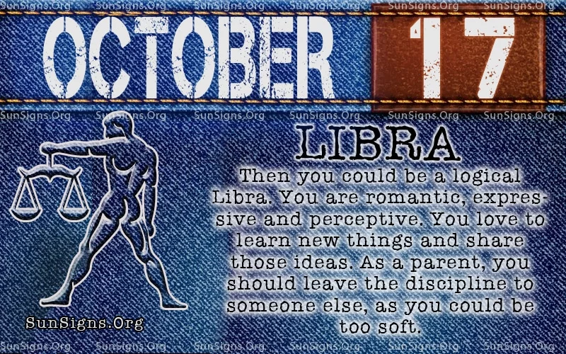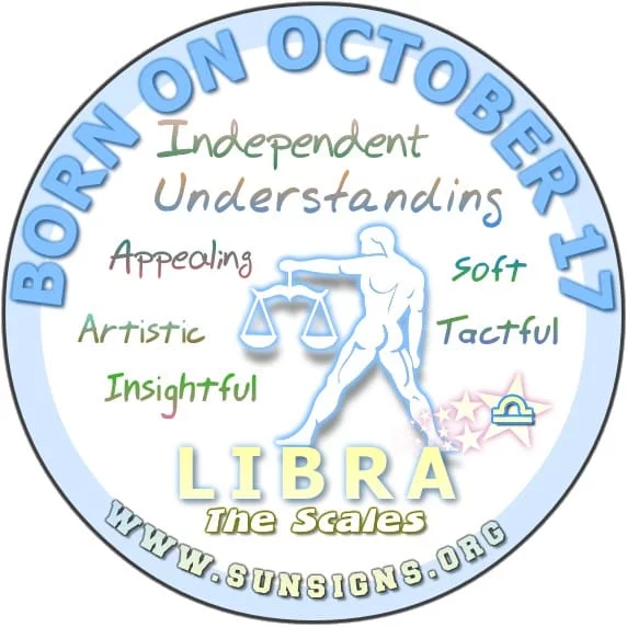 IF YOUR BIRTHDAY IS ON OCTOBER 17, then you are a Libra who is wise, artistic, and to say the least, complicated. You want harmony but often conflict with what your logical self says and what your heart tells you.