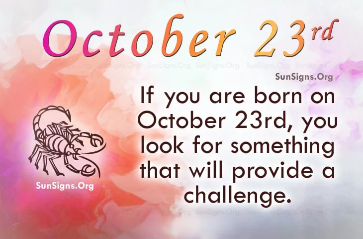 Famous people born on OCTOBER 23rd likely have high expectations from their friends and loved ones. Their birthday zodiac sign is Scorpio. If efforts are made to maintain peace, they will turn a negative situation into a positive one.