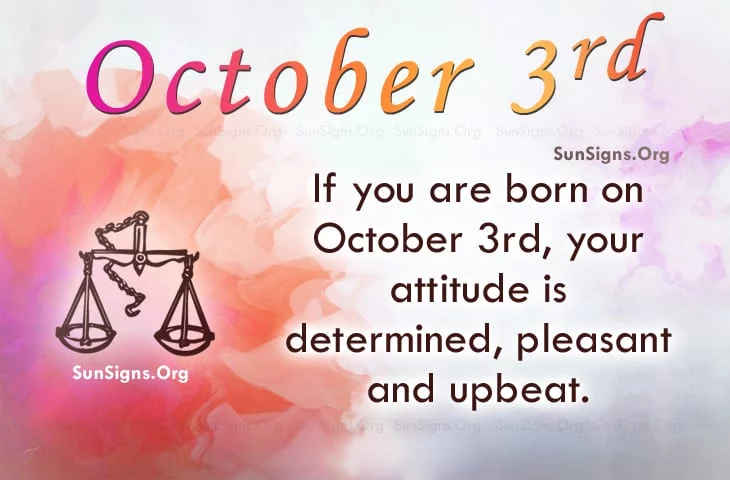Famous people born on OCTOBER 3 are determined Libra. Mainly, their attitude is pleasant and upbeat. They have a tendency to lure people without even knowing it. It could be because they are the sensible one in the group or they could have a quality that fosters trust and admiration.