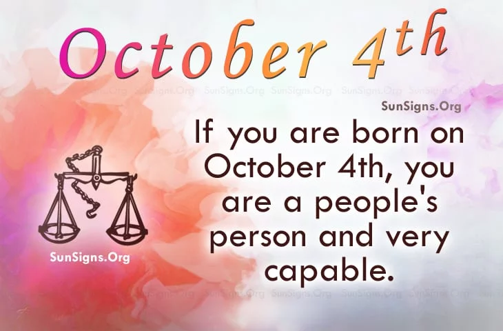 Famous people born on OCTOBER 4th are a Libra who is mostly pig-headed but they like helping others. This birthday personality has a tendency to stretch the truth a little bit. In addition, they are resourceful and they know how to handle their money.