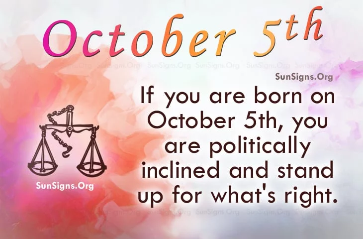 Famous people born on OCTOBER 5 are Libra who are politically inclined. They stand up for what’s right and want to make vast improvements to their community. They’ve always been a natural when it comes to helping others and finding those resources in which to do it. They are caring individuals to say the least. At the same time, they are youthful or playful individuals. They just like having a good time.