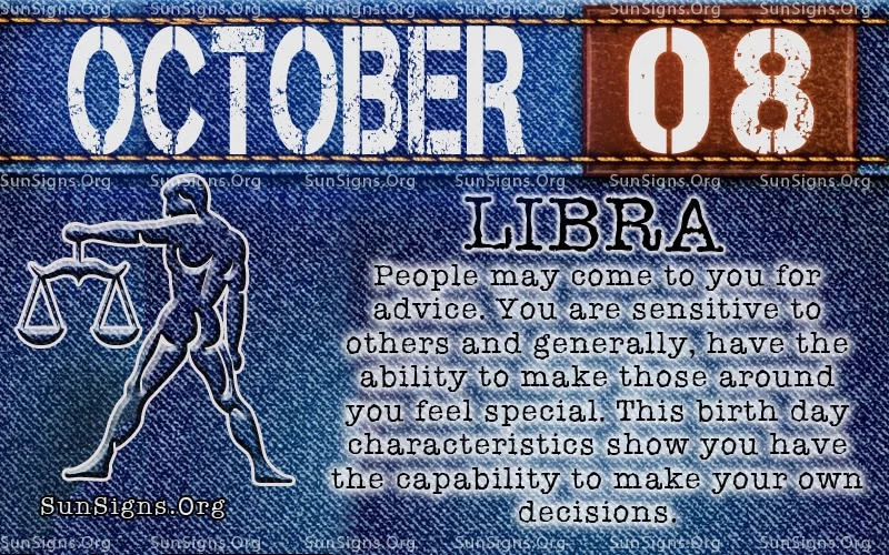 OCTOBER 8 birthday horoscope predicts that you are a Libra who is likely to be a social butterfly. Paying close attention to the little things, you make a good friend and lover. Professionally, this is an asset as well. You have a way with people and cannot be influenced by insincere words or actions. You love being around people who appreciate you.