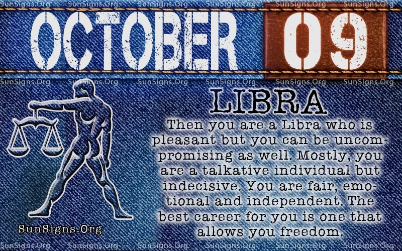 It is typical of this Libra birthday person to be indecisive. Maintaining accord and equal standing is an effort for someone born today. You take things lightly. If you don’t have to make a difficult decision, then you don’t. The October 9 birthday characteristics show that you can see both sides of an argument or a situation.