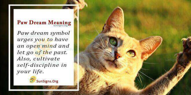 Paw dream symbol urges you to have an open mind and let go of the past. Also, cultivate self-discipline in your life.