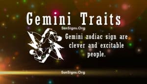 The Gemini traits show that they may have several projects going on at one time! Both the Gemini man and the Gemini woman are independent people who do not like being controlled. They need to be stimulated by something new all the time. Click Here To Read More About Gemini Personality Traits