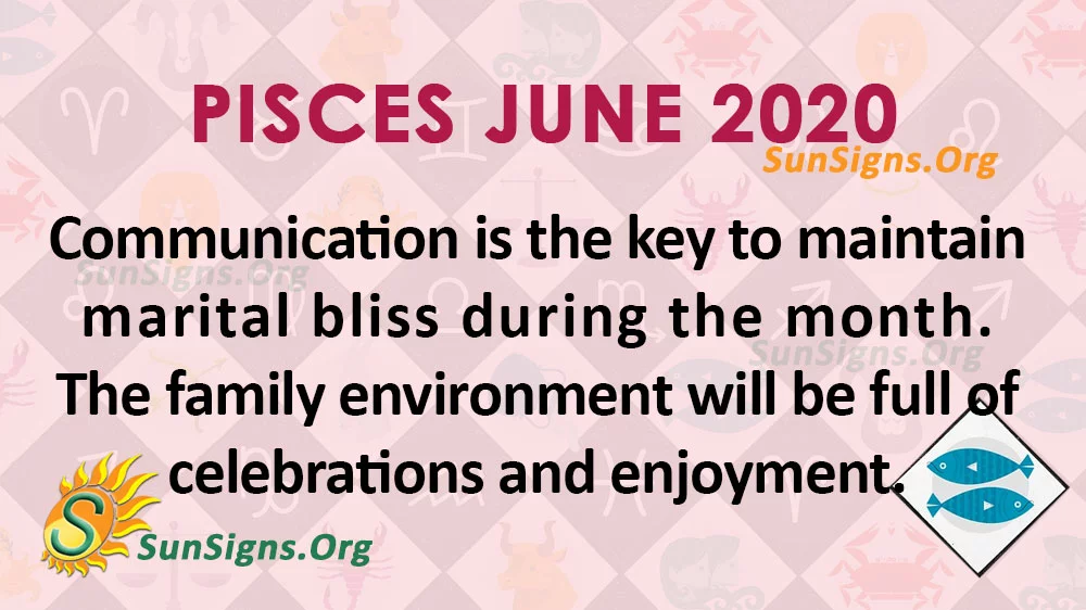 June 2020 Pisces Horoscope predictions indicate that career development and personal ambitions should be harmonized with domestic affairs and psychological stability. You will be interested in the renovation and decoration of the house. Caution should be exercised while buying luxurious items for the house.