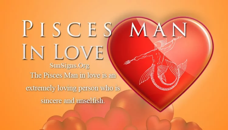 The Pisces Man in-love personality is an extremely loving person who is sincere and unselfish towards his relationship with a woman. Your final goal in life while dating is to fall in love with a woman. Because of your reserved nature, you do not plunge into marriage straight away, and you spend a lot of time studying the prospect.