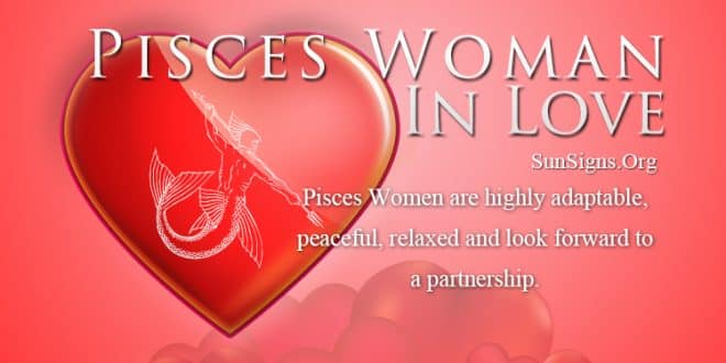 The Pisces Woman in Love Relationships is highly adaptable, peaceful, and relaxed. She looks forward to a partnership that is calm and stress-free. Your strong feelings, creativity, and perceptions are evident in your relationships.