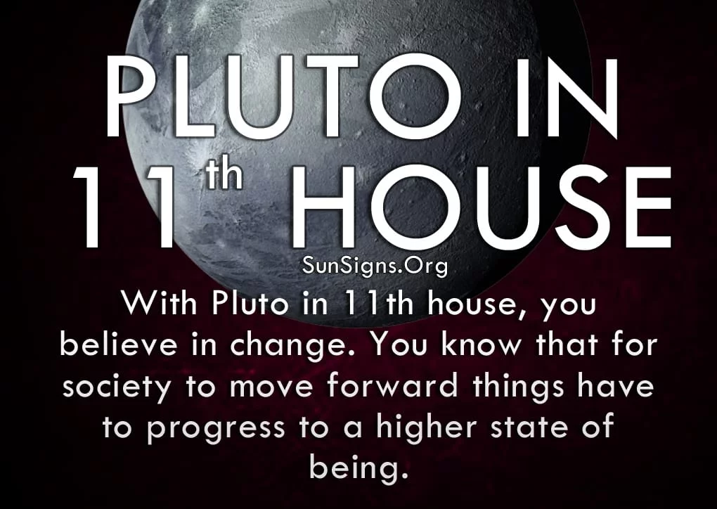What is the importance of Pluto in the 11th House? Planet Pluto brings transformation into your life. You need to be willing to make changes in your life to make you better and improve your life. Exercise personal freedom in all you do, and things will work out for the better in your life.