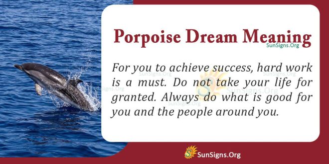 Seeing a porpoise in your dream is a positive omen. It is a sign that if you remain committed, you will achieve all your heart’s desires. For you to achieve success, hard work is a must. Do not take your life for granted. Always do what is good for you and the people around you.