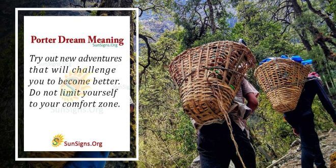 The porter dream symbol signifies going through a tough period in your life. However, you should not give up. Trust that things will get better. Be optimistic. With the right attitude, you will get through the difficult period in your life.