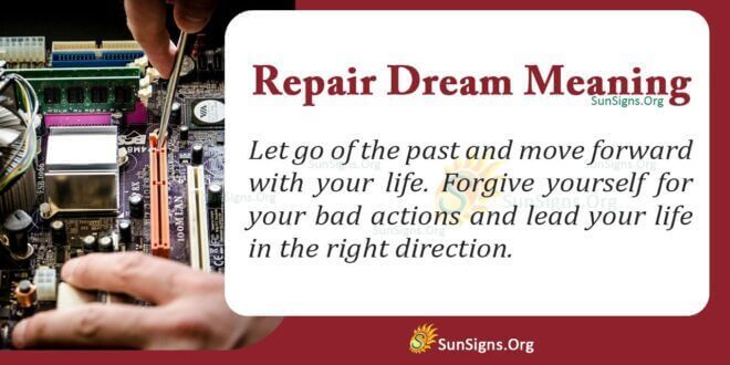 According to the repair dream dictionary, dreaming of repairing something symbolizes letting go of negative energy. Surround yourself with positive energy and fill your mind with positive thoughts.