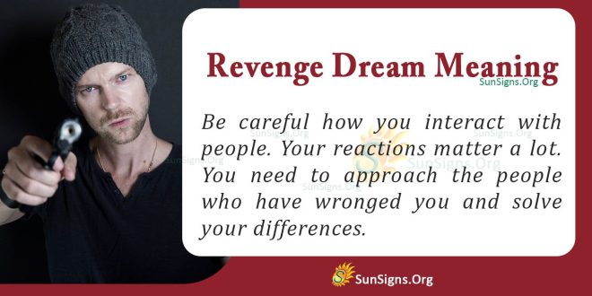 Dreaming of revenge means that you are likely to do things that you will regret. This dream is a message from your subconscious mind that you should watch yourself. Be careful how you interact with people. Your reactions matter a lot. You need to approach the people who have wronged you and resolve your differences.