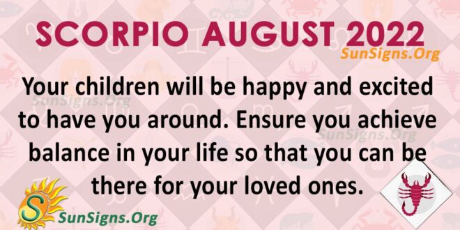 Much focus should be placed on how you live your life. Focus on living your best life while being a positive influence on the people around you. Scorpio August 2022 Horoscope calls on you to always trust that things will get better no matter the challenges you face in your life.